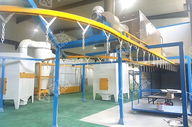 粉末噴涂設備主要包括:前處理設備、噴粉系統、固化系統、烘干系統、熱源系統、電控系統、懸掛輸送鏈等。適用于工件表面的噴粉處理,采用大選風噴粉系統,確保粉回收率高達99%??焖贀Q色10到15分鐘,根據客戶需求設計制造和制造。