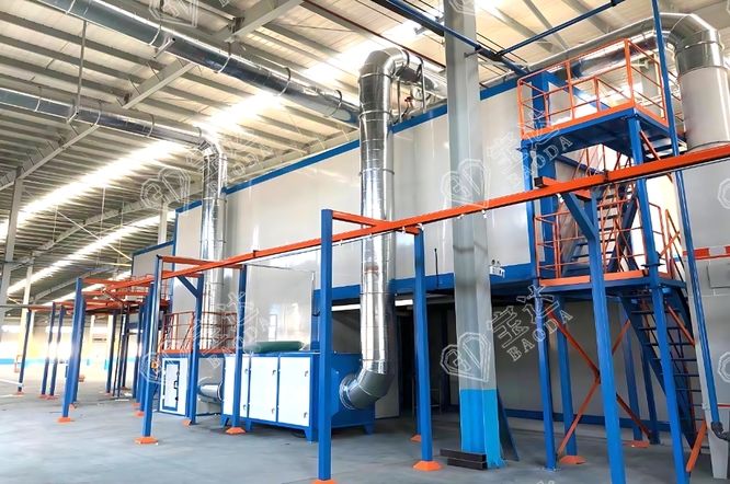粉末噴涂設備主要包括:前處理設備、噴粉系統、固化系統、烘干系統、熱源系統、電控系統、懸掛輸送鏈等。適用于工件表面的噴粉處理,采用大選風噴粉系統,確保粉回收率高達99%??焖贀Q色10到15分鐘,根據客戶需求設計制造和制造。